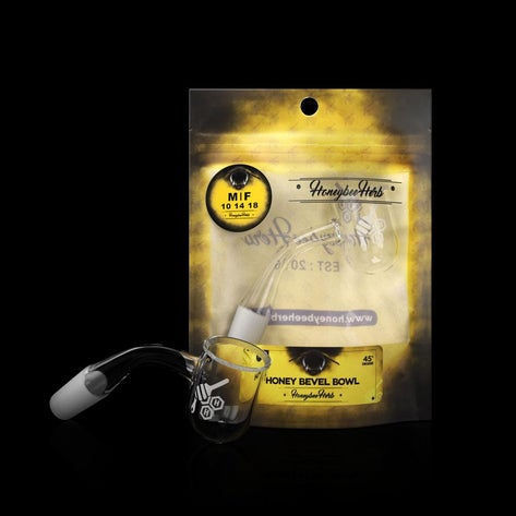 Designed for the connoisseur, this piece is the cornerstone for bevels and bowls alike. With a fresh twist from the standard 90° joint design. The offer gets even better as the Bevel Bowl comes with both female or male joints, in addition to coming in all the most common diameter sizes ranging between 10mm and 18mm the Honey Bevel Bowl also comes in a 90° angle. As with all our products, we recommend the use of a butane torch rather than propane to guarantee being set for the long haul.