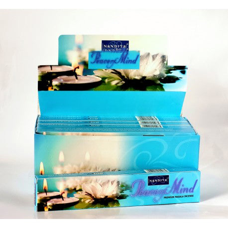 Nandita, Peace Mind Incense Natural & Organic Hand-rolled Masala Incense Sticks 15g are premium masala incense sticks hand‑rolled in India. Each 15g box contains approximately 10–12 sticks. Ideal for meditation, relaxation, or everyday enjoyment.
