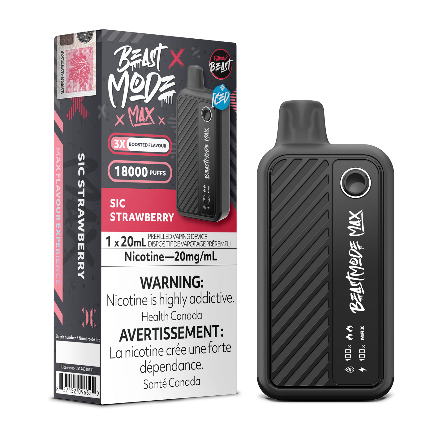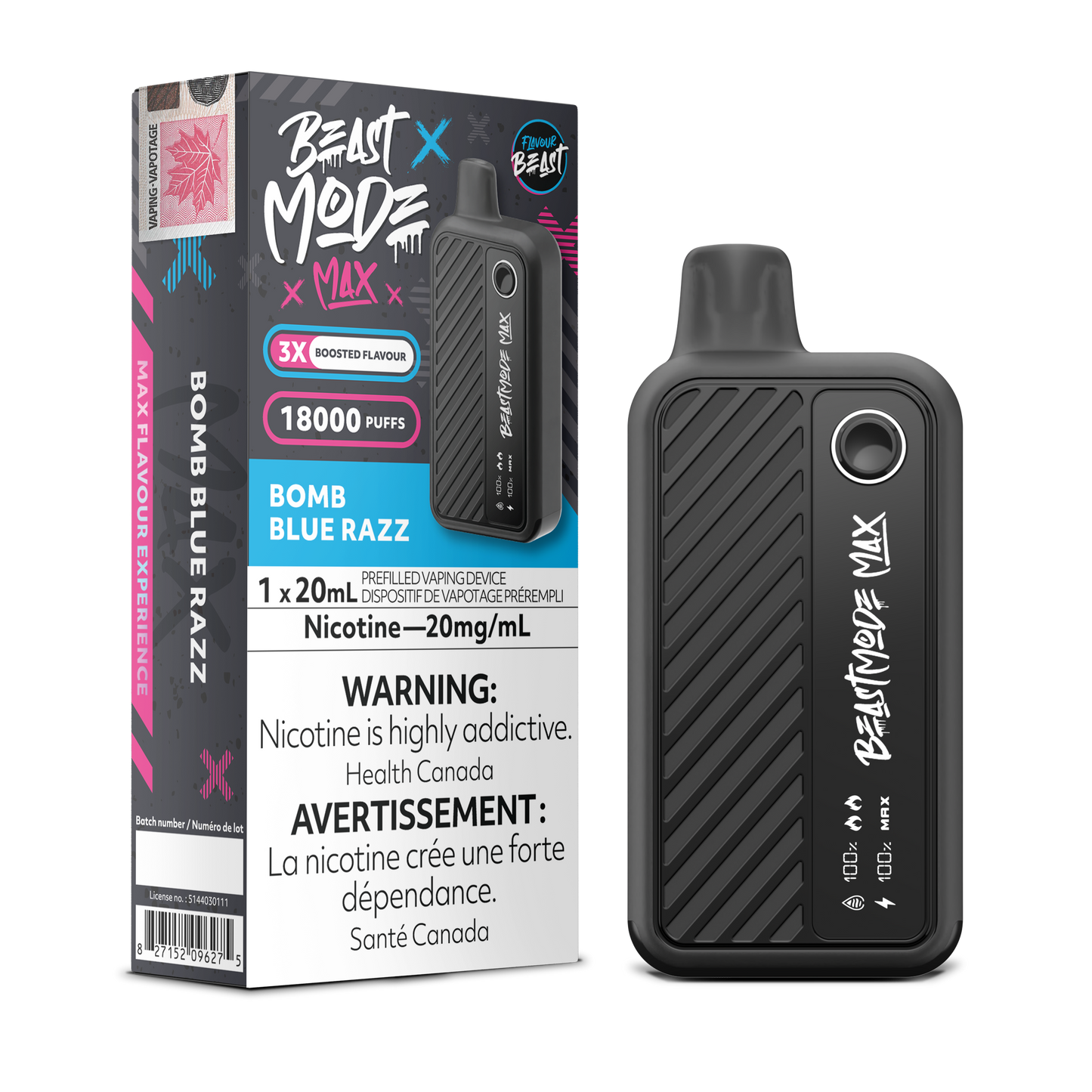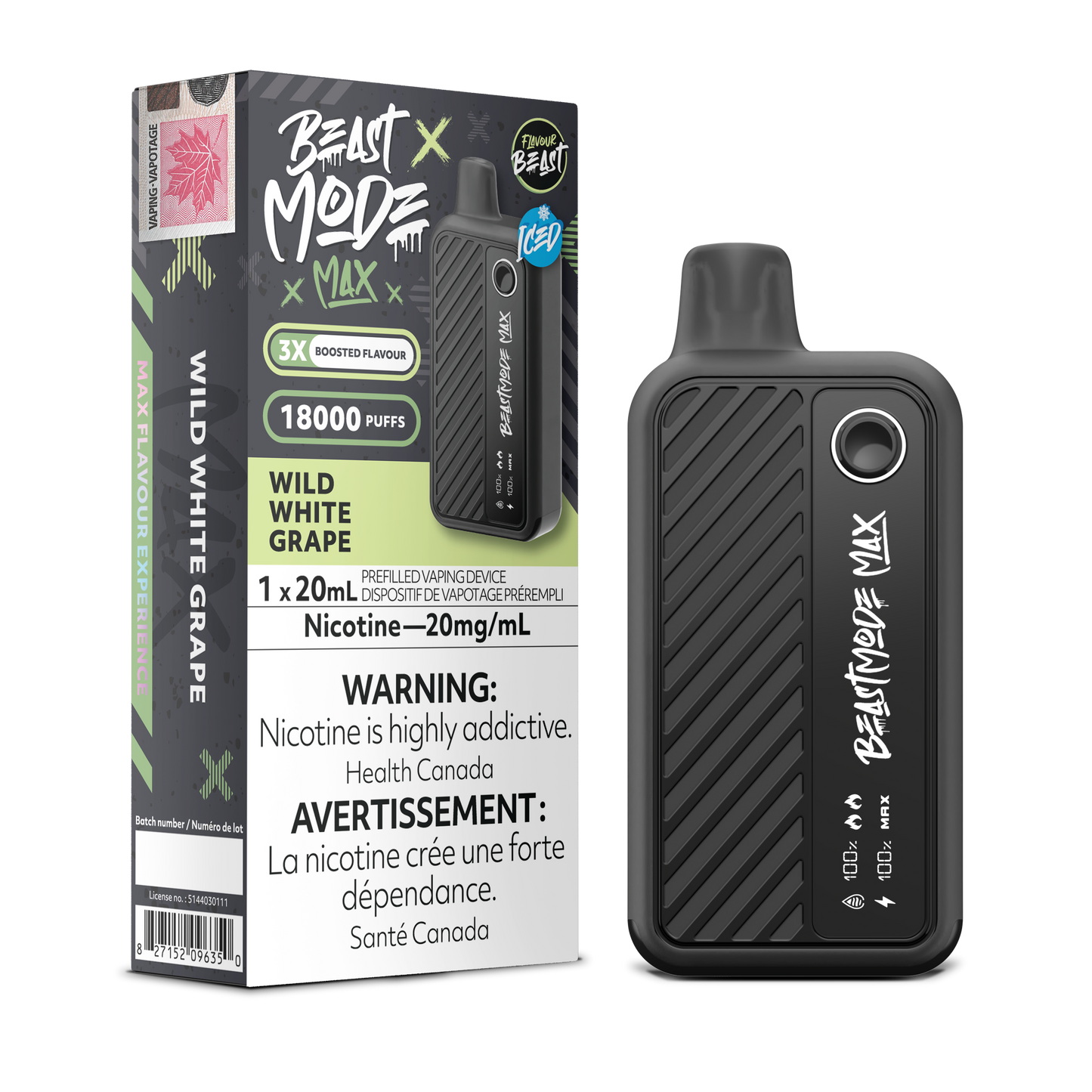 The Flavour Beast Mode MAX 18000 Puff Disposable Vape. It features Beast Mode MAX which ups the power the power even more with 3x power modes and the all new MAX mode which provides up to 23W of power. Change between the 3 power modes with the click of a button, Standard mode provides up to 18,000 Puffs while Beast Mode provides up to 15.000 and the all new MAX mode provides more vapor but up to 12,000 Puffs. With 20mL of 20mg salt nicotine prefilled e-liquid the thing goes on for days. The Beast Mode will allow you to recharge the 850mAh battery to the last bit of e-juice.