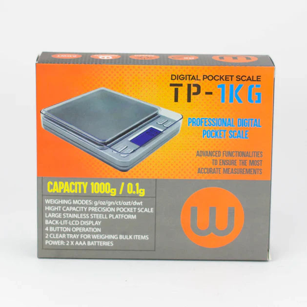 Weigh Gram TP-1KG Digital Pocket Scale offers impeccable design, accuracy, and the highest level of durability. The unit is housed in super strong, plastic material with a water resistant cover. The TP-1KG scale features an over sized stainless steel weighing platform and LCD screen.